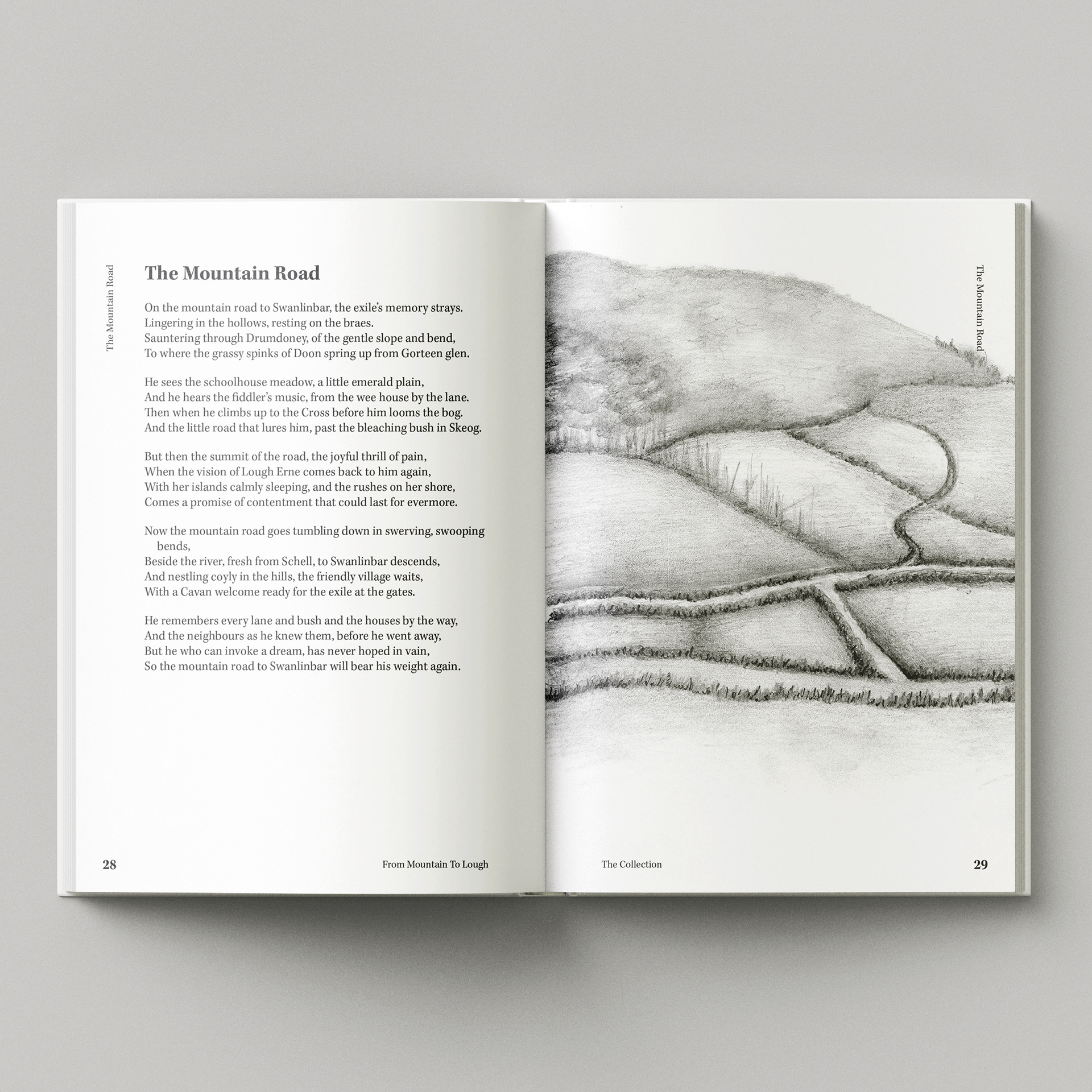 The book From Mountain to Lough was carefully designed to honour both the legacy of Matt Duggan and the cultural heritage his poetry preserves.