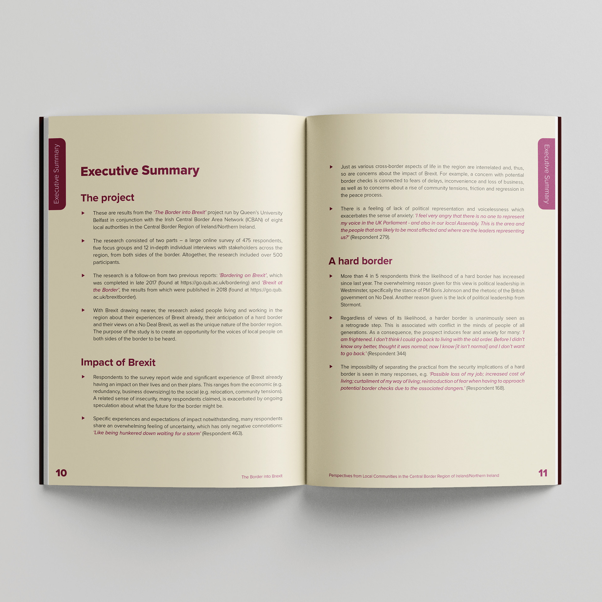 In designing the layout for the ICBAN Brexit reports, I took responsibility for transforming complex academic research into a publication that was clear, engaging, and visually coherent. I developed the full layout structure, creating a hierarchy that guided readers through long‑form text, data findings, and policy analysis. I designed custom charts, maps, and infographics to communicate key insights with accuracy and consistency.
