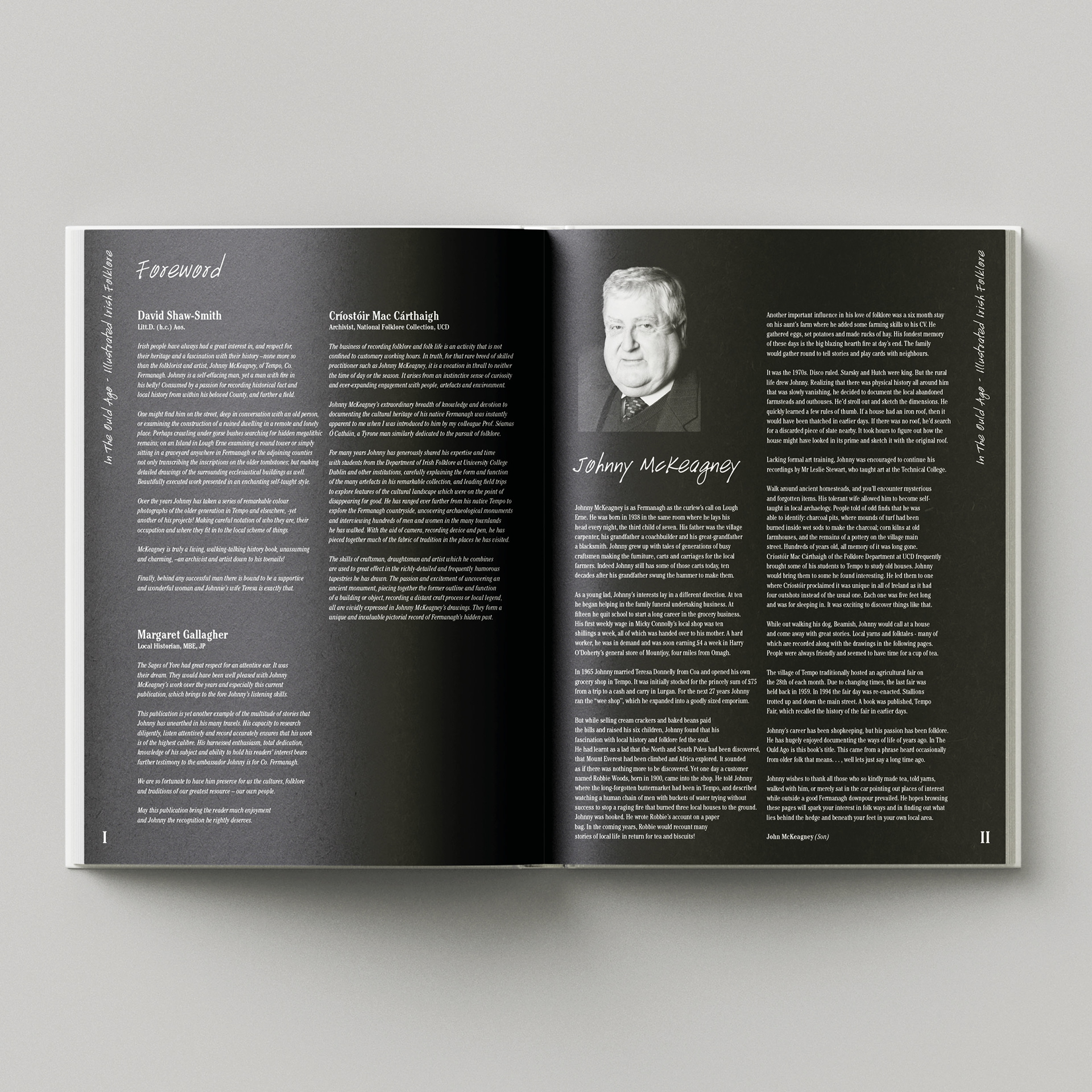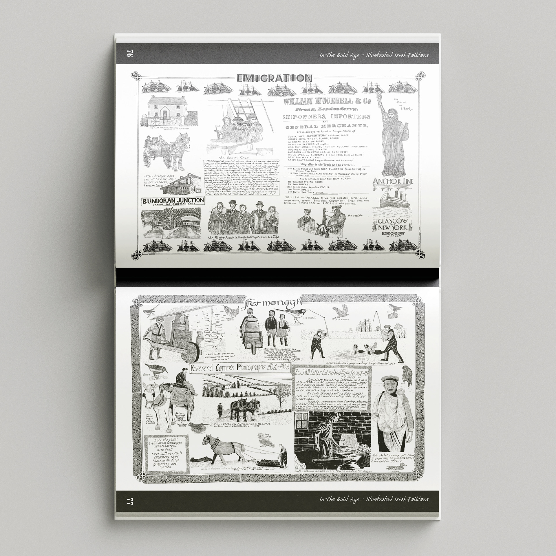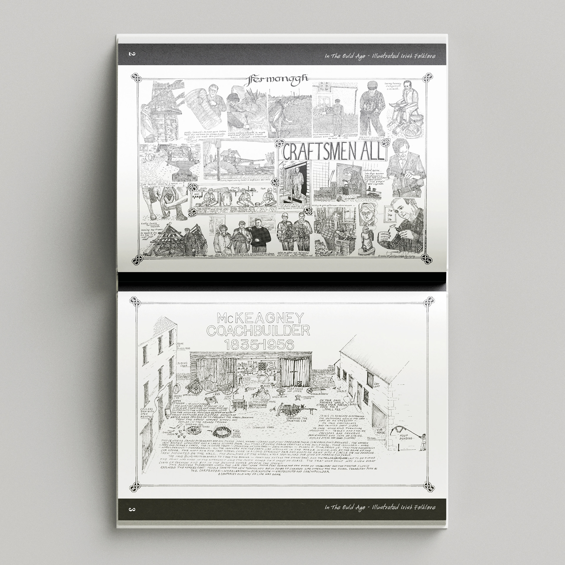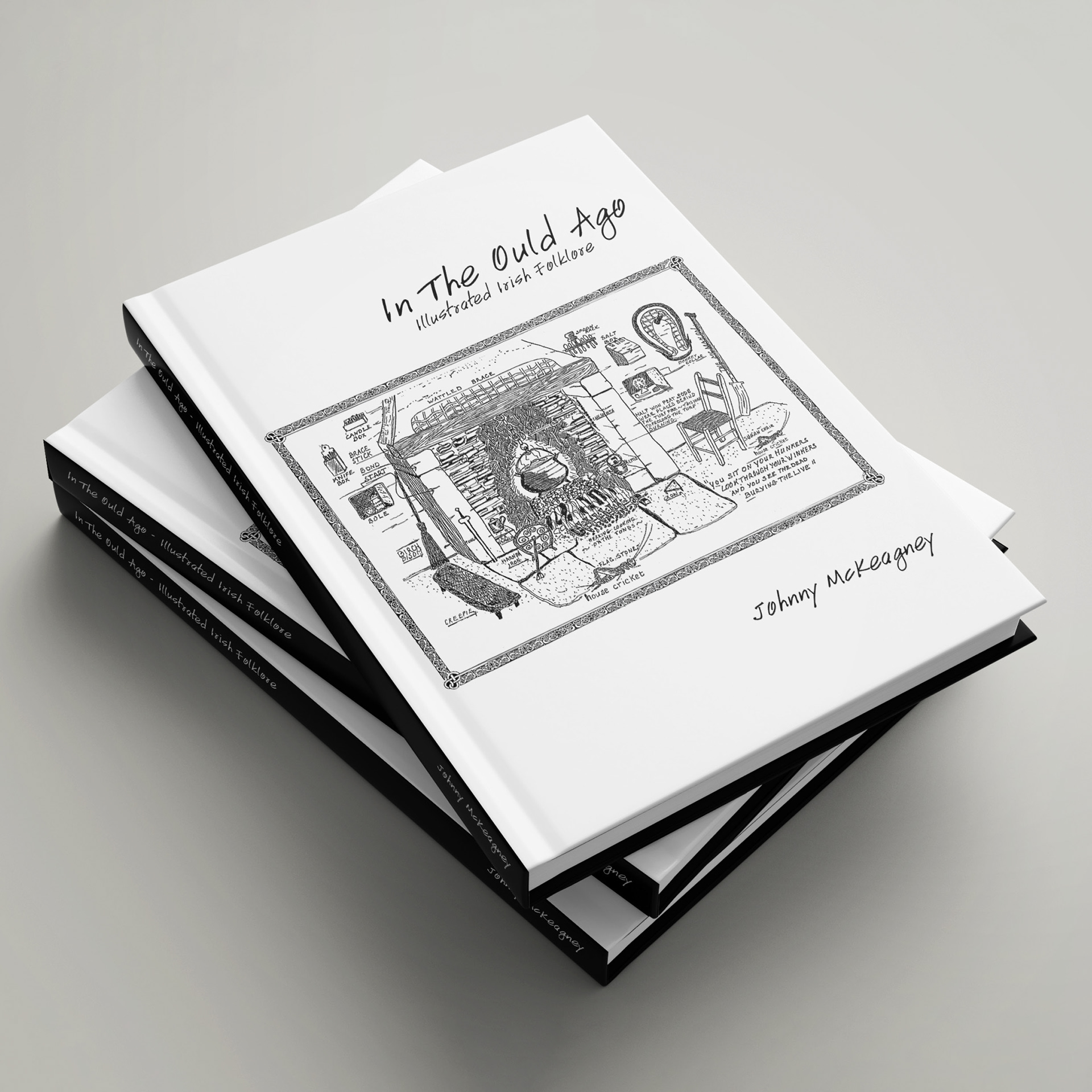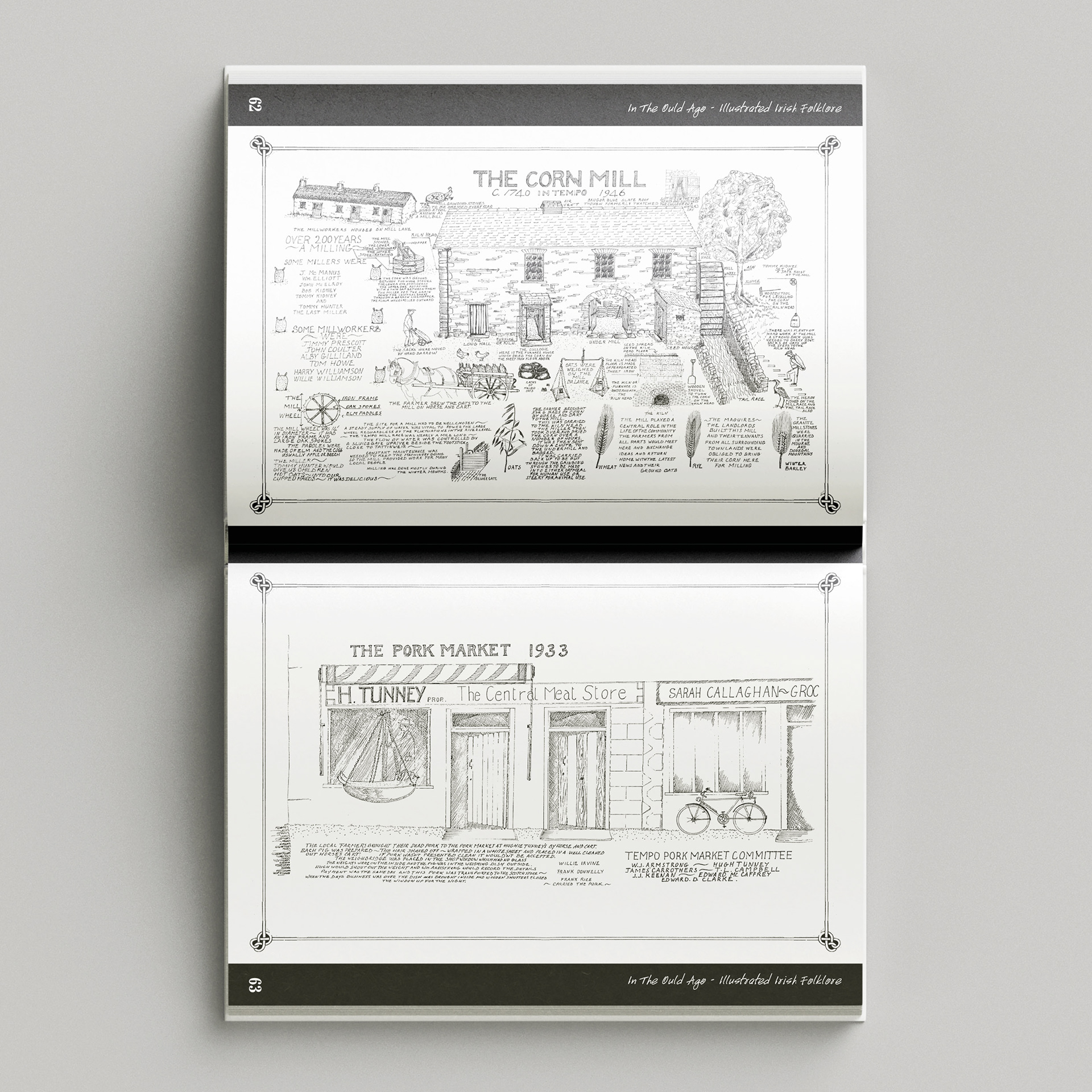 This project showcases my design work for In The Ould Ago – Illustrated Irish Folklore, a richly detailed visual record of Fermanagh’s cultural heritage created by Johnny McKeagney. My role focused on presenting his intricate hand‑drawn illustrations, maps, and historical notes with clarity, balance, and respect for the book’s archival spirit.