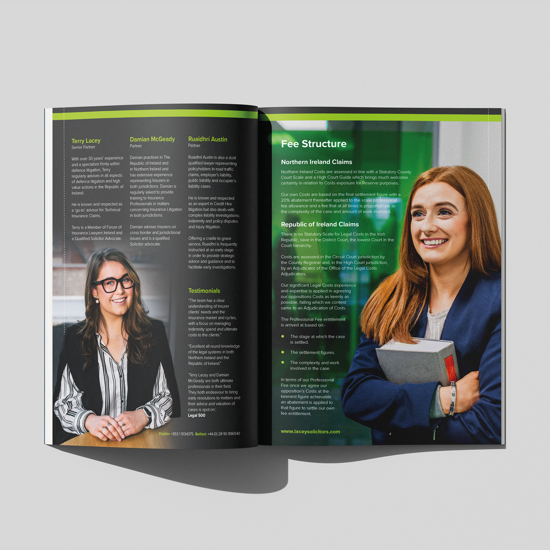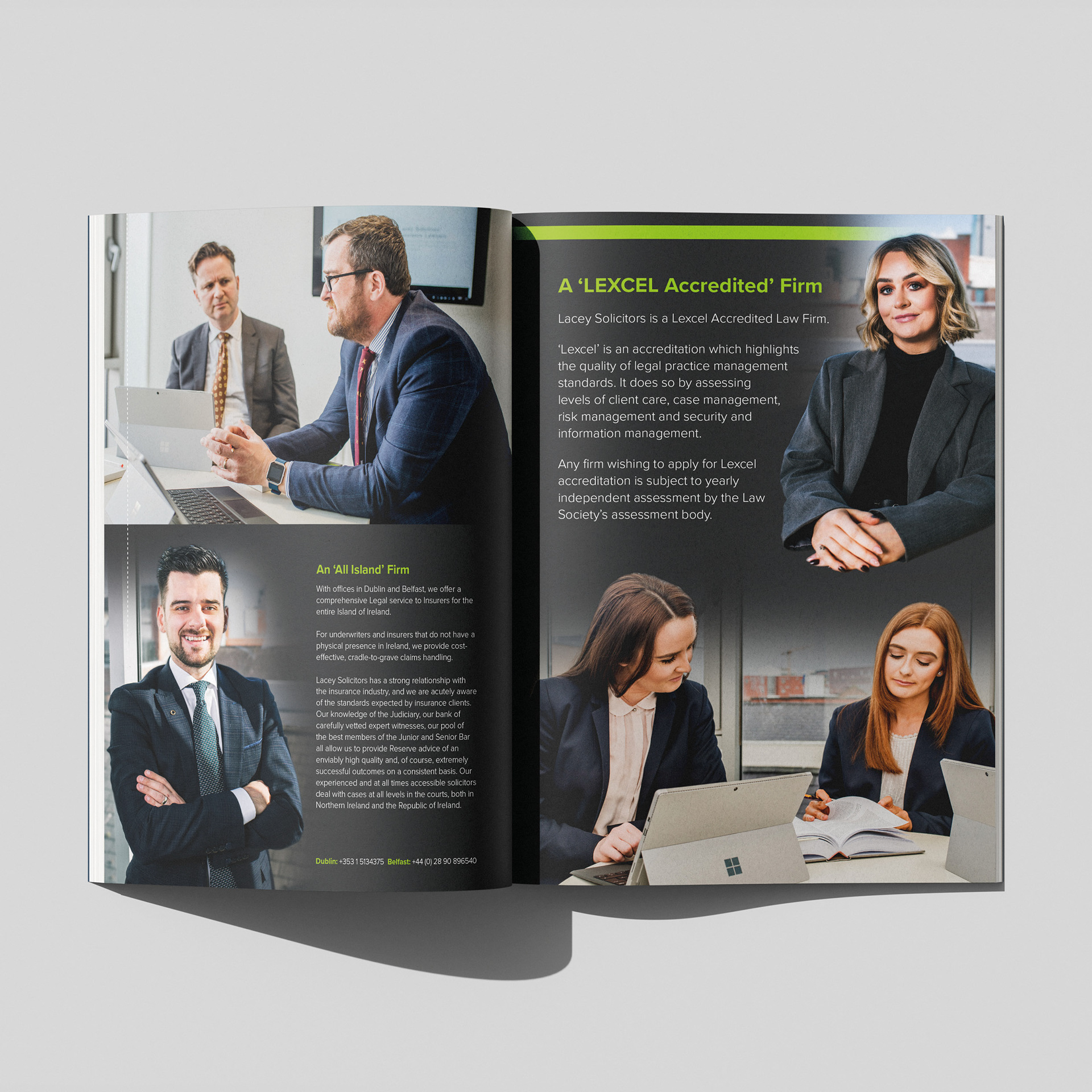 In my capacity, I oversee the design and marketing materials for Lacey Solicitors. This encompasses a range of items, including brochures, stationery, flyers, signage, and office graphics. My creative involvement ensures that Lacey Solicitors presents a professional and cohesive image to its clients and stakeholders.