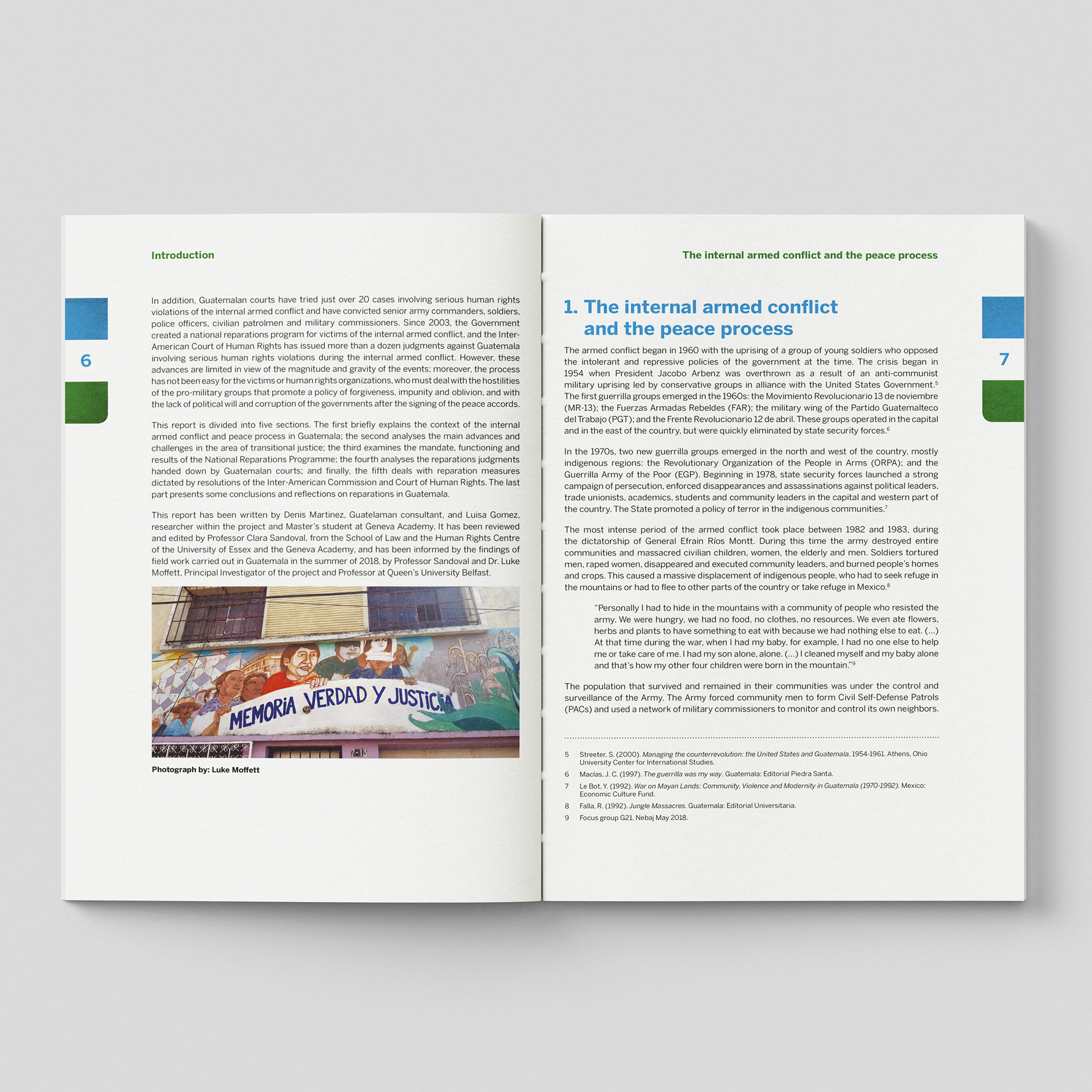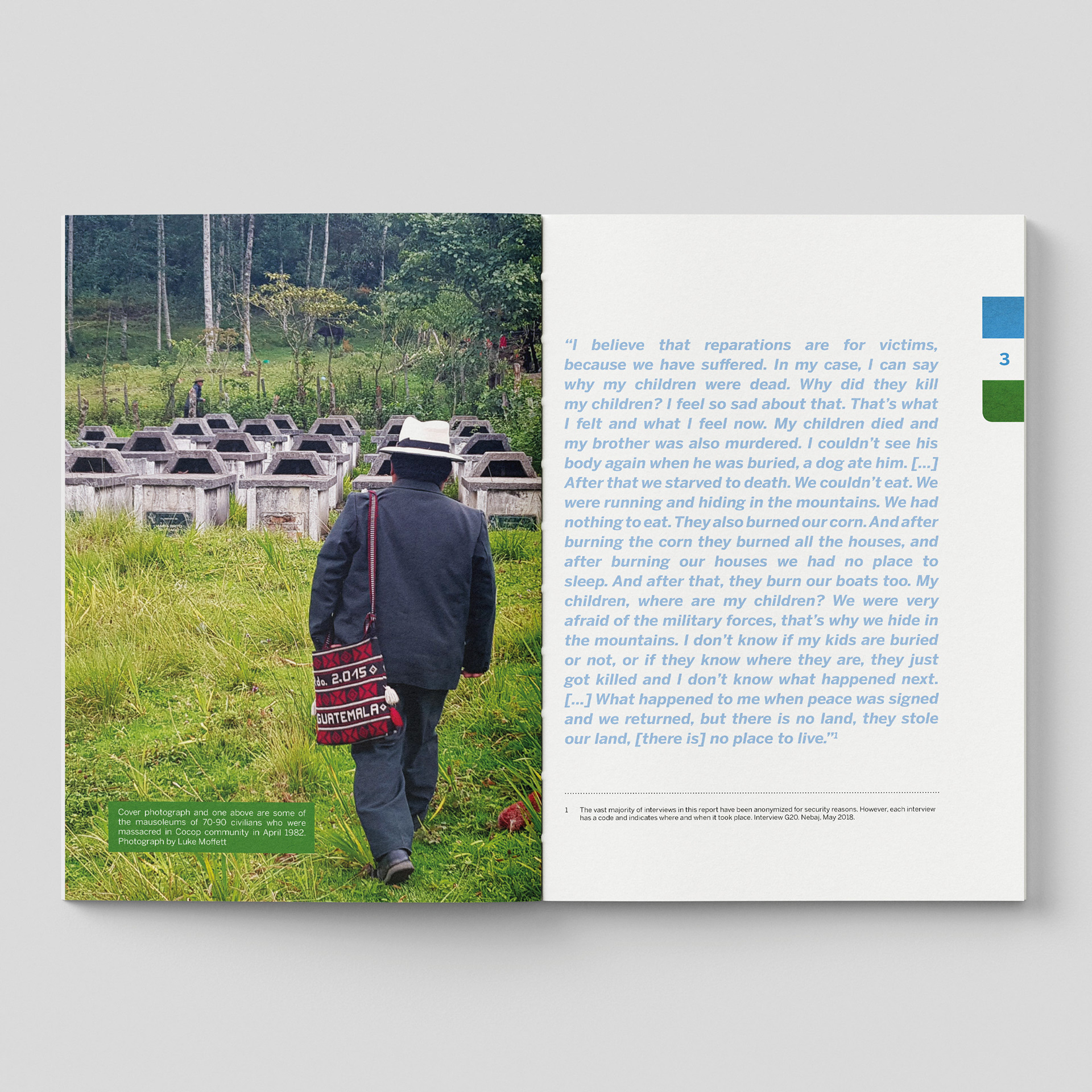 I designed this publication to honour the voices at the heart of Guatemala’s long struggle for truth, justice, and reparation. Working with deeply sensitive testimony and rigorous research, I focused on creating a clear, respectful layout that allows survivors’ words and the report’s findings to speak with strength and dignity.