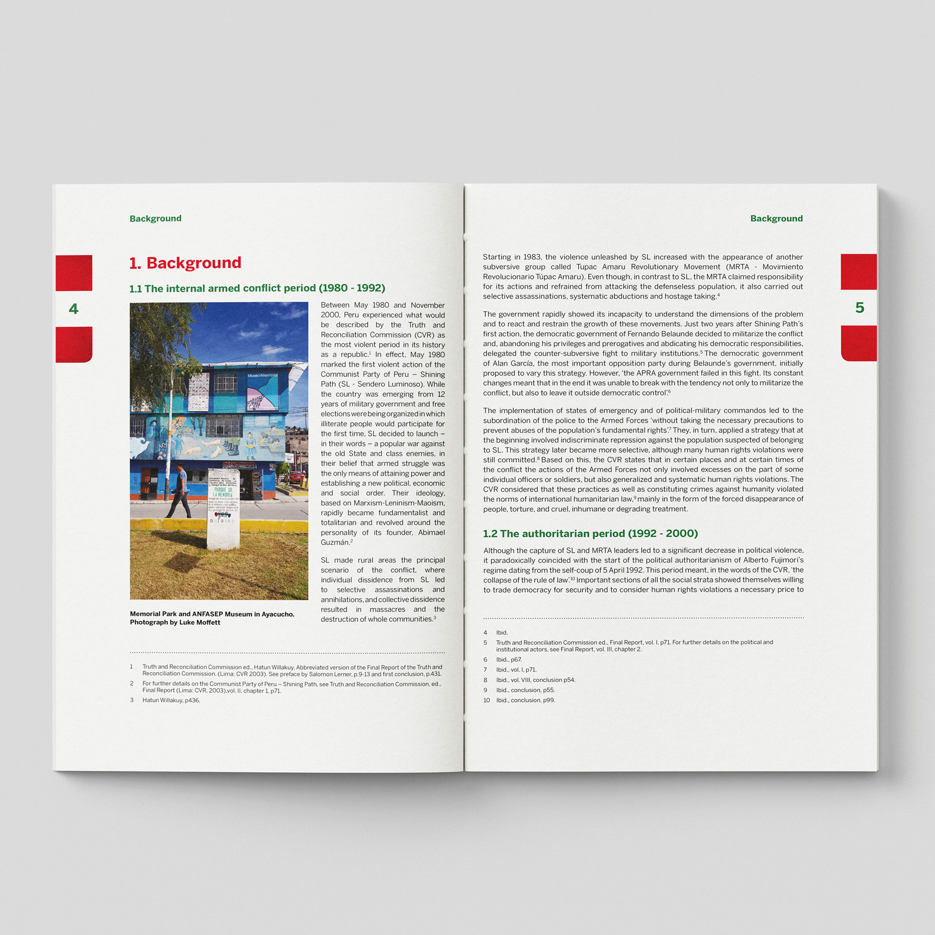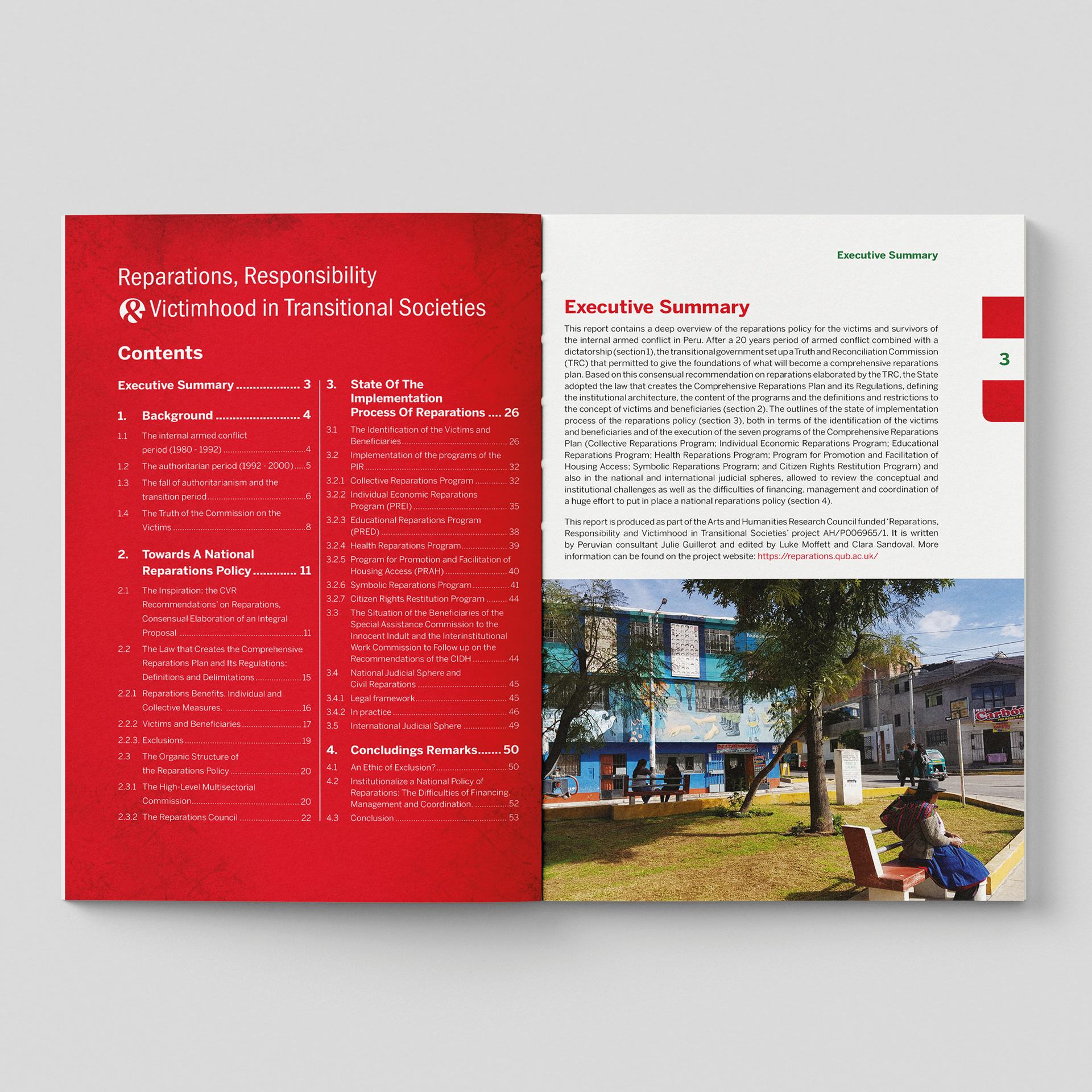 I approached the design of this publication with a deep sense of responsibility, shaping a visual language that supports a complex and often painful national story. The report examines Peru’s twenty‑year internal armed conflict and the long struggle to build a comprehensive reparations policy, tracing the Truth and Reconciliation Commission’s findings, the creation of national programmes, and the lived realities of victims seeking recognition and redress.