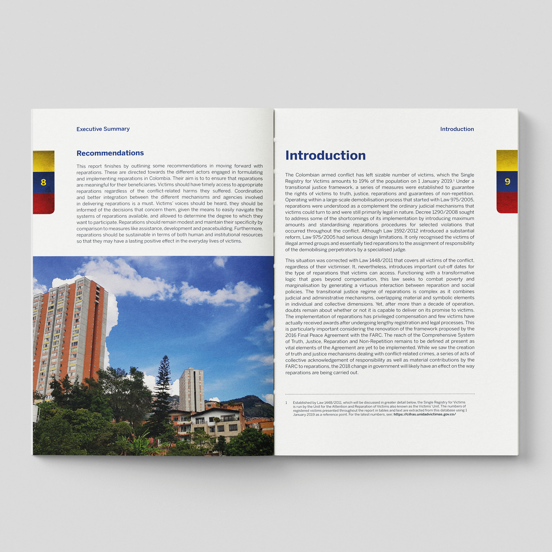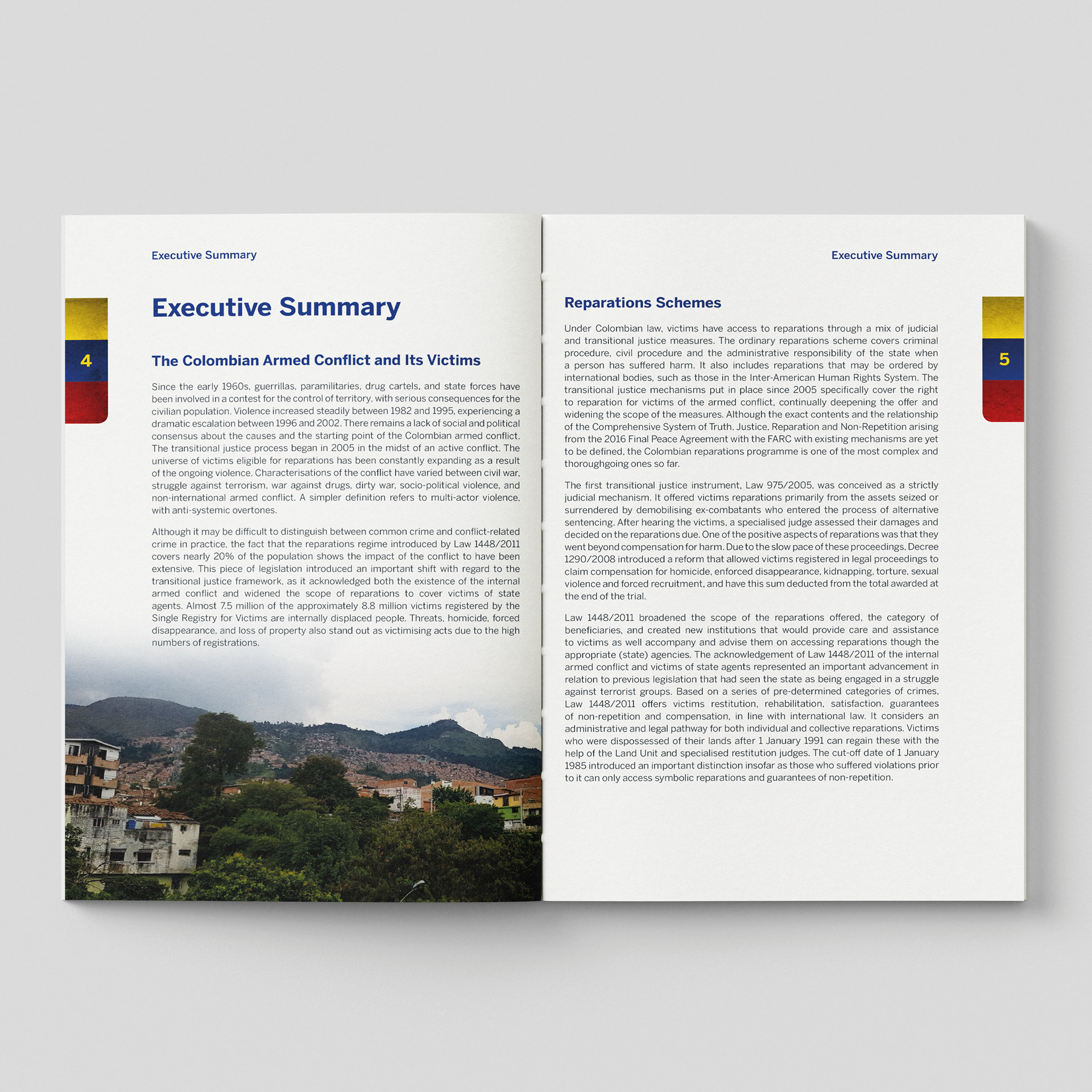 I designed this policy report on reparations in Colombia with a focus on clarity, structure, and respect for the complexity of its subject. My work involved creating a clean, navigable layout that supports a dense analysis of the country’s transitional justice framework, from the legacy of the armed conflict to the challenges victims face in accessing truth, accountability, and meaningful redress.