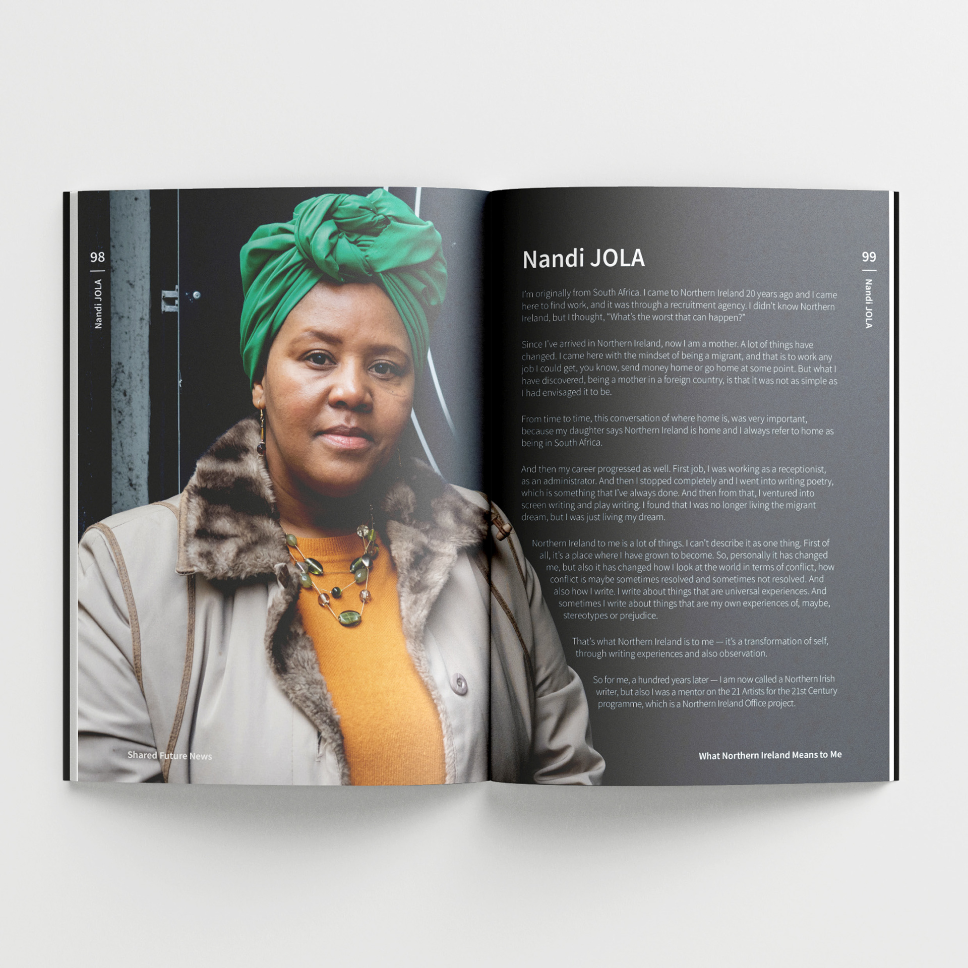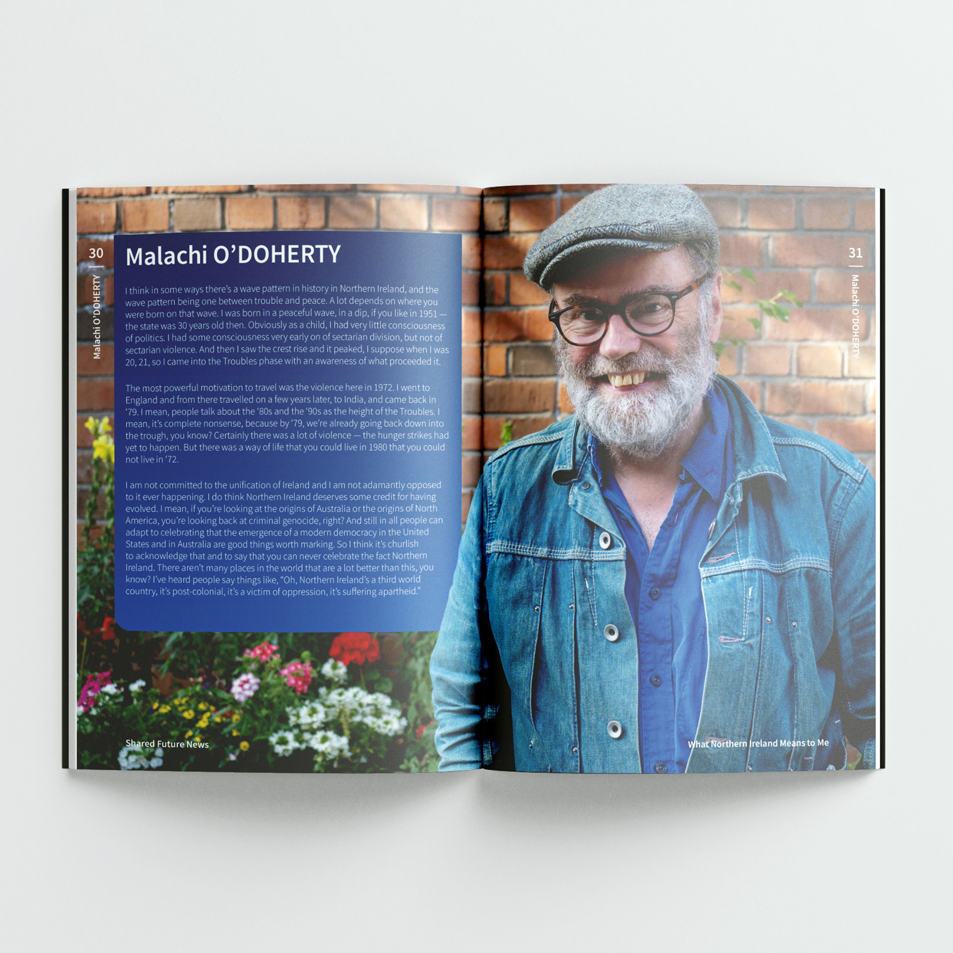 My design work aimed to create a calm, cohesive space where these diverse stories, photographs, and perspectives could sit together naturally. Every page was crafted to honour the contributors’ words while guiding readers through a thoughtful, human portrait of Northern Ireland at a pivotal moment in its history.